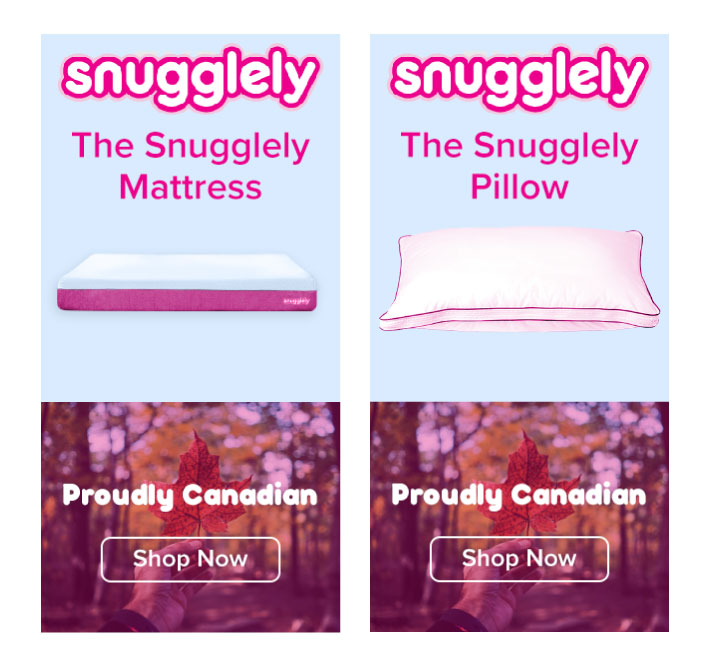 In one example, there’s a reminder about Snugglely’s mattress, in the other, a pillow. Depending on the interest of the site visitor, they will be reminded of the specific product that captured their attention.